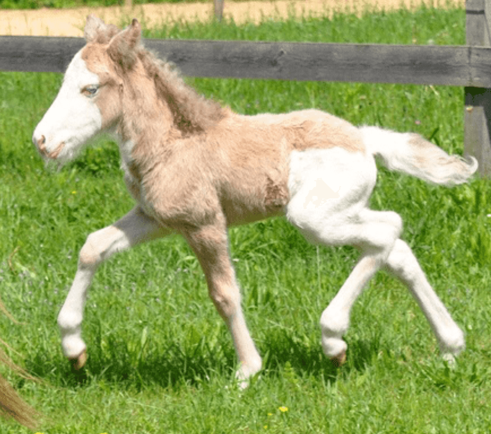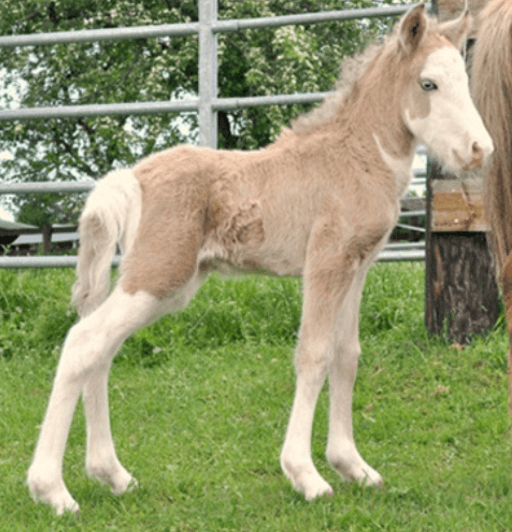 Bovendien bezit hij ook nog 50% Crème-gen en 50% Zilverappel-gen.